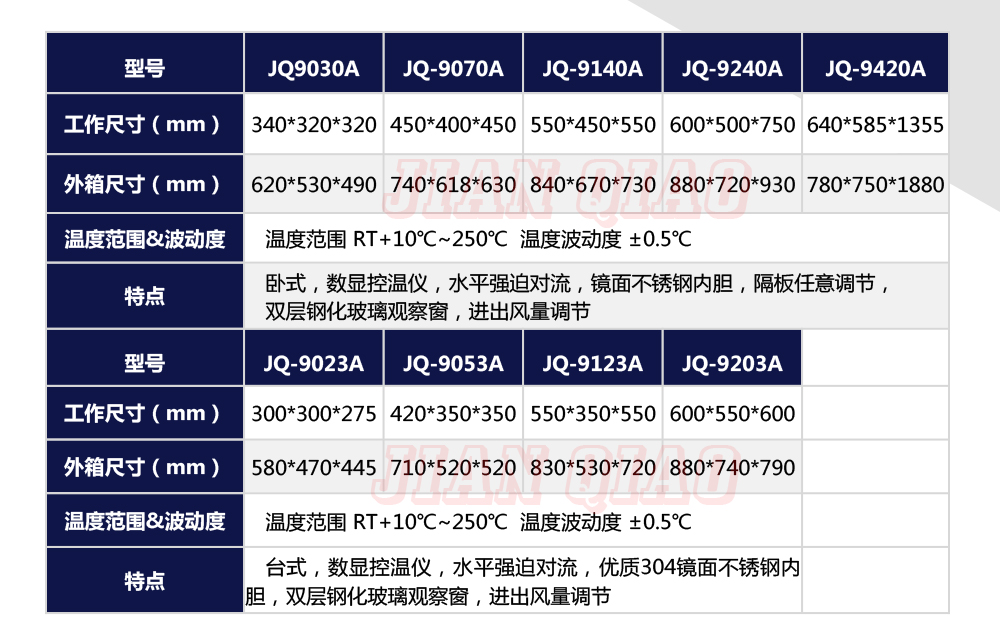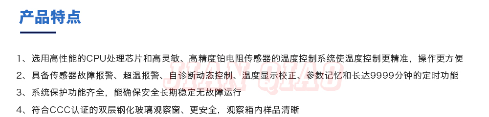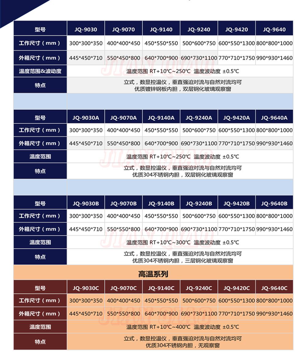 產(chǎn)品型號:JQ-9640 品牌:劍 喬 用途:精密高溫箱用于對電子電工、汽車摩托、航空航天橡膠、塑膠、金屬、船舶兵器、高等院校、科研單位等相關(guān)產(chǎn)品的零部件及材料在高溫恒溫變化的情況下,檢驗(yàn)其各項(xiàng)性能指標(biāo)。咨詢熱線:13829135130