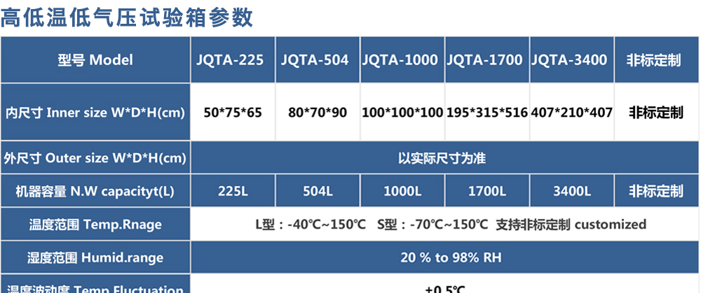 產(chǎn)品型號:JQTA-504 品牌:劍 喬 用途:高低溫低氣壓試驗箱主要用于試驗工件在低氣壓、高溫低溫單項或同時作用下的環(huán)境適應性與可靠性試驗,并或同時對試件通電進行電氣性能參數(shù)的測量。咨詢熱線:13829135130