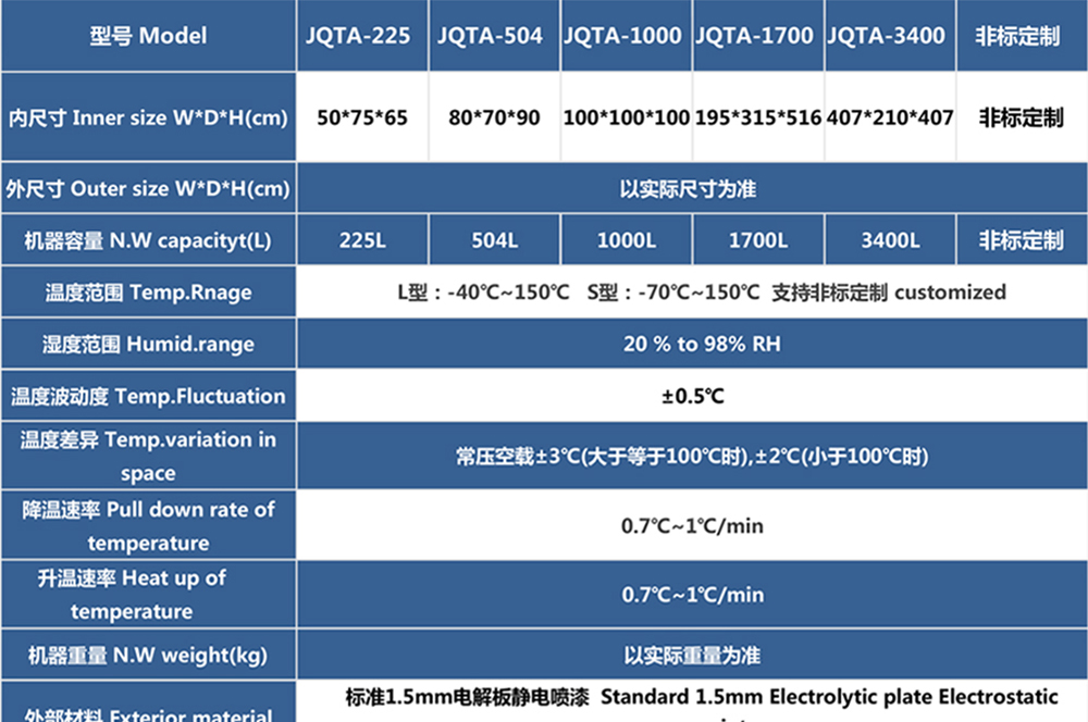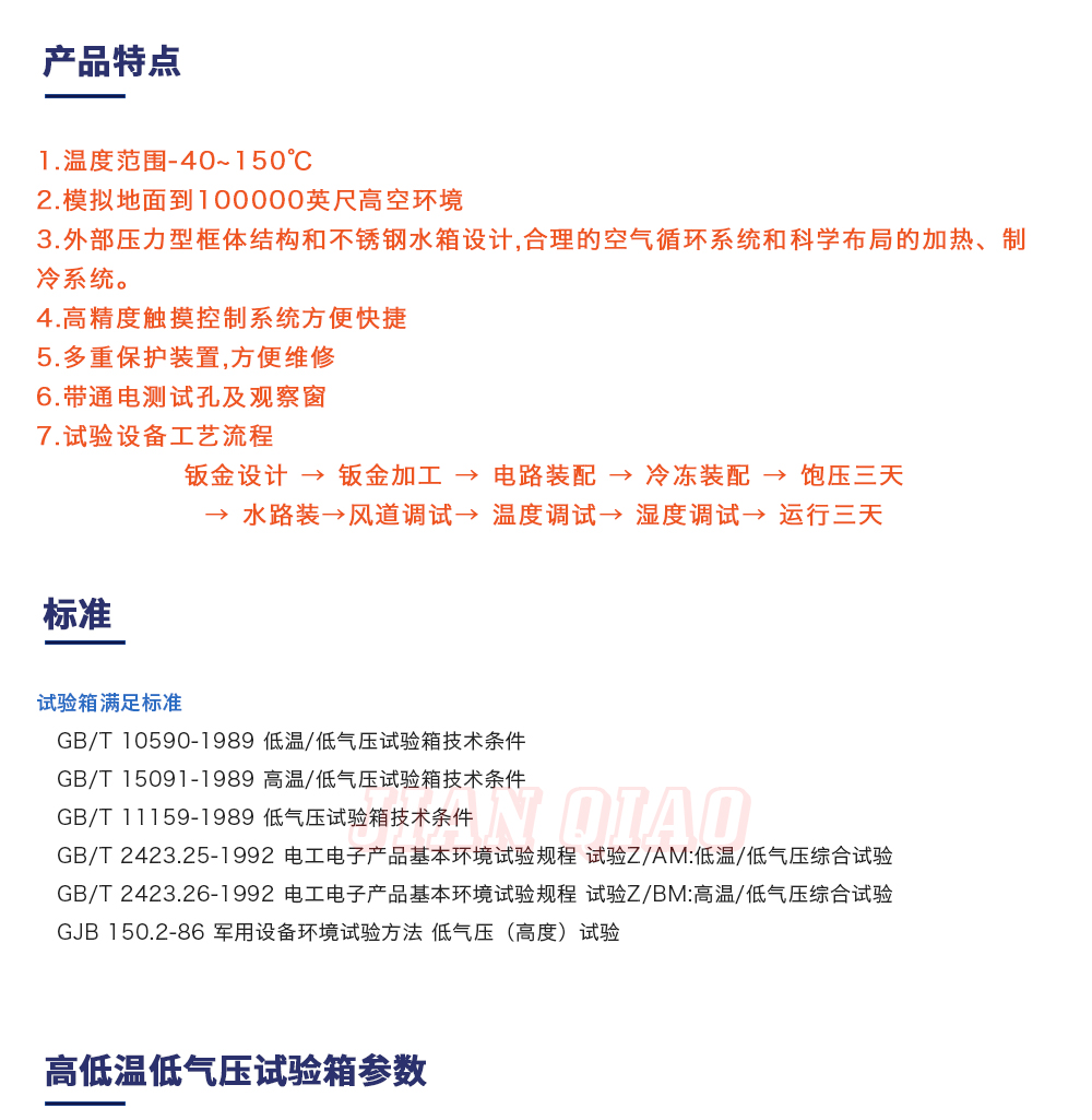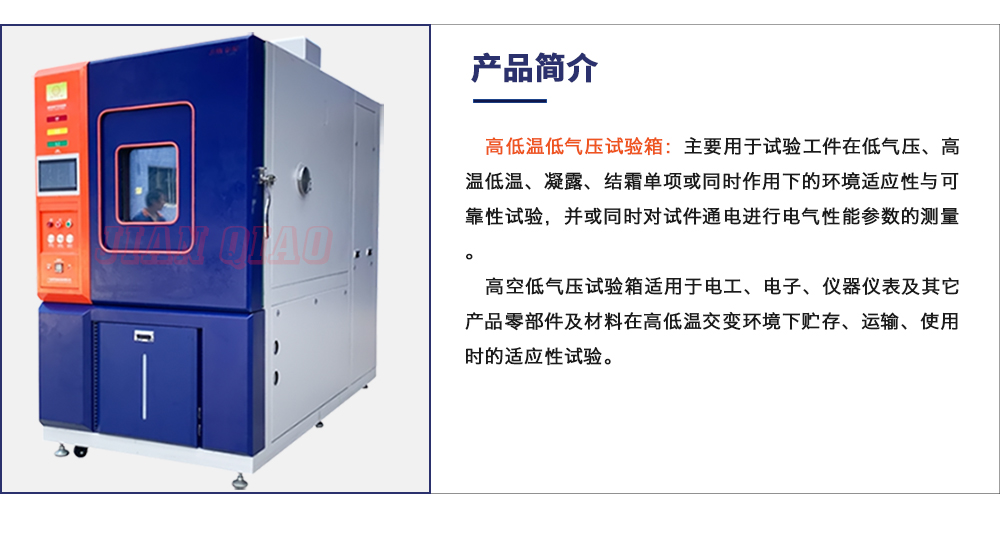 產(chǎn)品型號:JQTA-225 品牌:劍 喬 用途:高低溫低氣壓試驗箱:主要用于試驗工件在低氣壓、高溫低溫、凝露、結霜單項或同時作用下的環(huán)境適應性與可靠性試驗,并或同時對試件通電進行電氣性能參數(shù)的測量。咨詢熱線:13829135130
