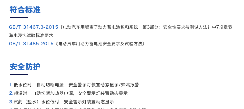 產(chǎn)品型號(hào):JQ-6018 品牌:劍 喬 用途:海水浸泡試驗(yàn)裝置主要用于電池以實(shí)車裝配狀態(tài)與整車線束相連然后以實(shí)車裝配方向在常溫下的海水成分中浸泡2h(海水為模擬海水成分,濃度為3.5%NaCl溶液)水槽中海水深度要足以淹咨詢熱線:13829135130