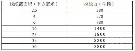 2.1.1 端子至線纜的拔出力:該測試是為了確保線束在車輛裝配過程及后續使用產生的作用力不會使線纜脫出端子,從而造成產品失效。該測試與供應商的壓接參數和線纜接插件匹配度有高度相關性。具體力學性能要求見表1。