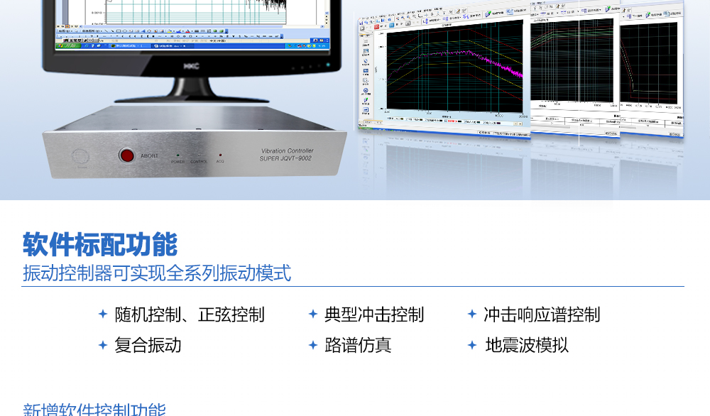 產(chǎn)品型號(hào):JQVT-9000系列 品牌:劍 喬 用途:振動(dòng)控制器可實(shí)現(xiàn)全系列振動(dòng)模式,包括隨機(jī)控制、正弦控制,典型沖擊控制、沖擊響應(yīng)譜控制、復(fù)合振動(dòng)、路譜仿真以及地震波模擬。同時(shí),為了進(jìn)一步創(chuàng)新振動(dòng)控制技術(shù),以適應(yīng)更咨詢熱線:13829135130